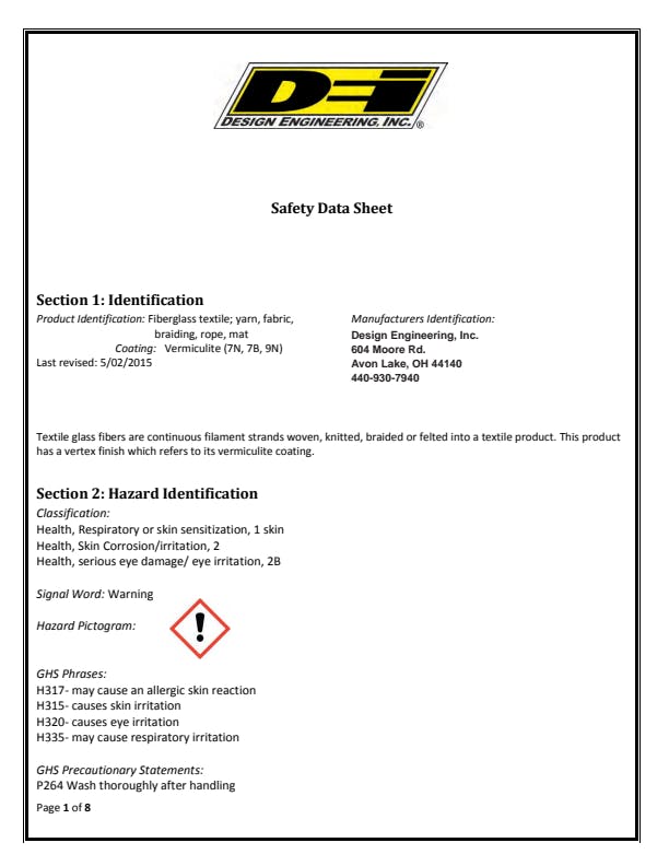 - Withstands 1200 ° F Direct Continuous Heat
