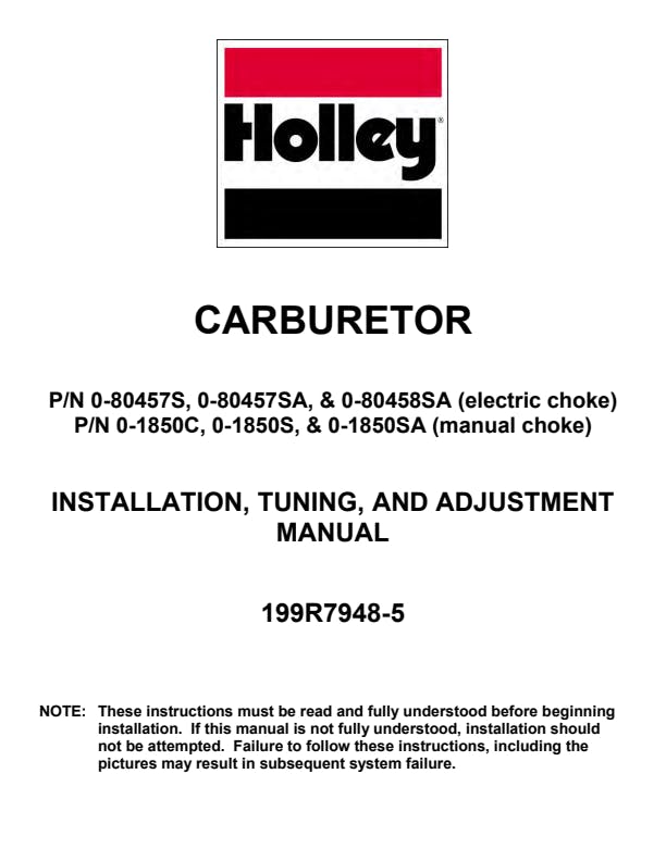 One of the most trusted carburetors of all times -the 1850! Its 600 CFM of airflow, vacuum secondaries, single fuel inlet and mechanical choke makes it amazingly universal. The 1850SA is constructed from aluminum which compared to its zinc counterpart equates to a weight savings of 40%! Being aluminum also means it will hold its shine and can be hand polished for a custom look! Don't trust your performance to just anyone, Holley is the only modular carburetor company that has been in business for over 100 years and has powered every NASCAR champion since the 60's.