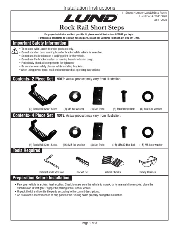 Finally, a patent pending rock guard solution that looks as great on the road as it does off the road! LUND's exclusive Rock Rail is a modular system that offers truck owners a choice of a double or single step rail that can quickly be removed, leaving the rock rail base to protect the truck body when hitting the trails. The revolutionary modular Rock Rail system is constructed of fully welded 3mm thick mild steel with a black wrinkle powder coat for years of rugged and durable service. Protecting your truck body from on road and off road rocks and debris, the Rock Rail system delivers unique style with premium performance. LUND's Rock Rail system is more than tough enough to protect your truck from most off-road terrain. Give your wild side an excuse to run free, while your sensible side maintains a great looking set of step rails for daily use. As with all LUND products, the LUND Rock Rail System is backed by a Limited Lifetime Warranty.