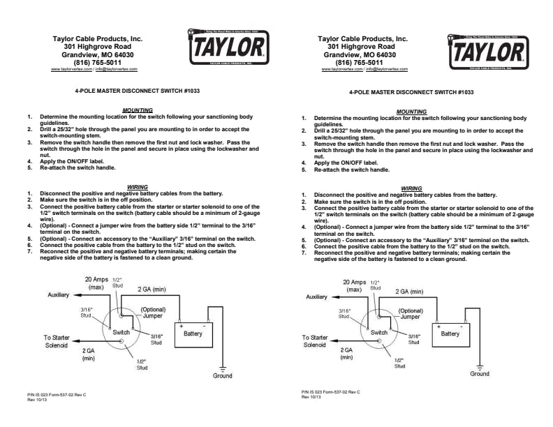4-Post Switch Battery Cut-Off Switch; 2 Additional Terminals; 180 Amp Capacity