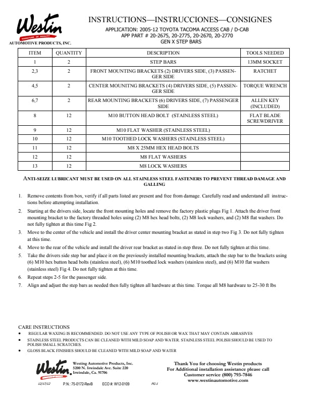 Mount Kit Included; 4 In. Upper Oval Tube; 2 In. Visible Accent Bar; Drop Down Step Decreases Step Up Distance By 6 in.; Molded Step Pad With Unique Pattern And Logo; Rocker Panel Mounting; U.S. Patent Number 6588783 And 6874801; 3 Year Warranty